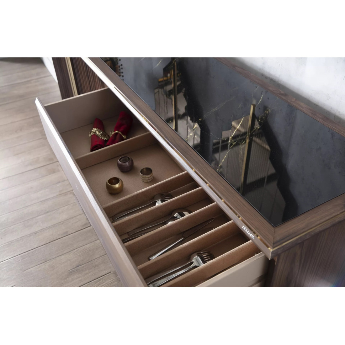 Буфет "Монтего" выполнен в современном стиле и украсит собой любую гостиную или столовую. Светлые тона и необычные ножки придают еще больше современности буфету.