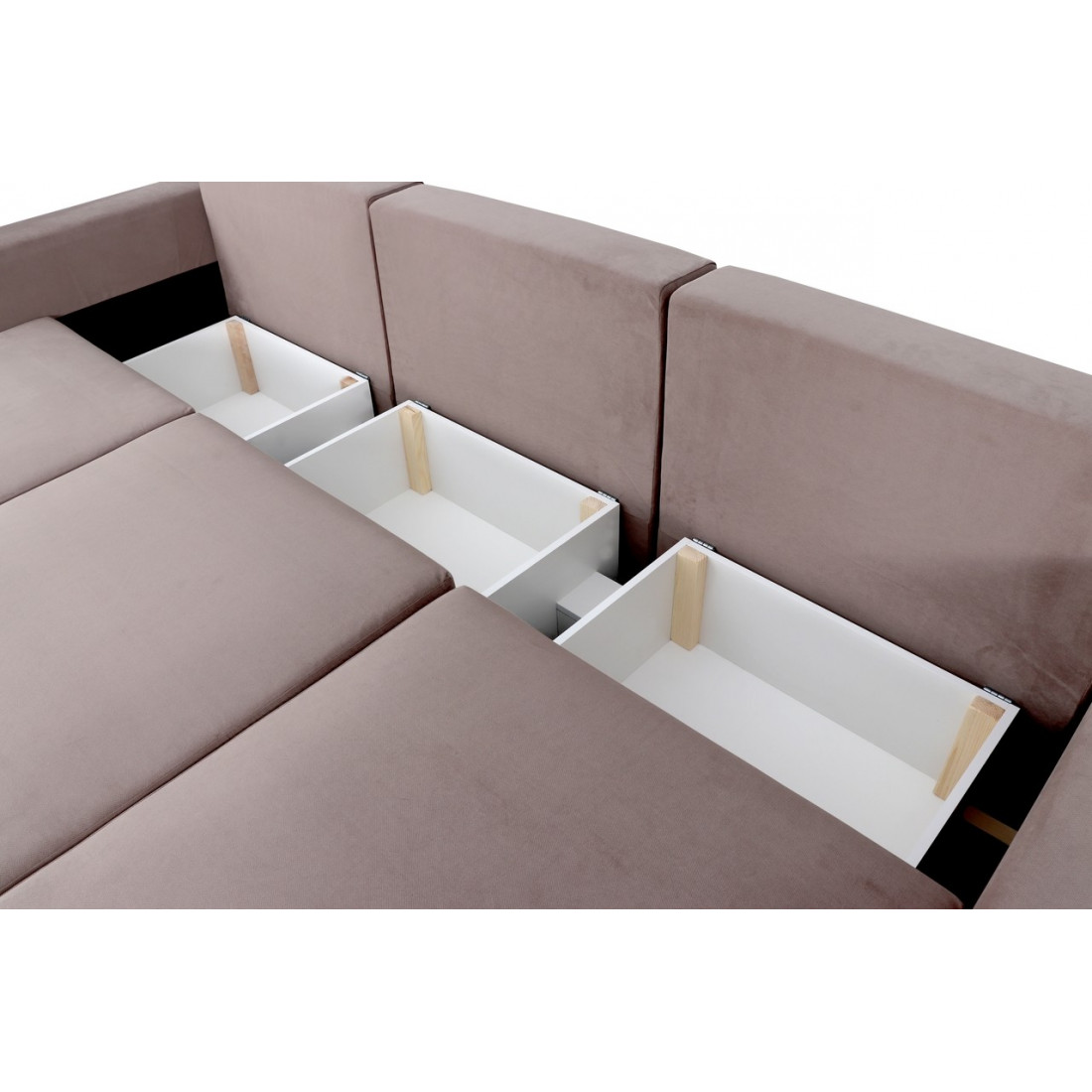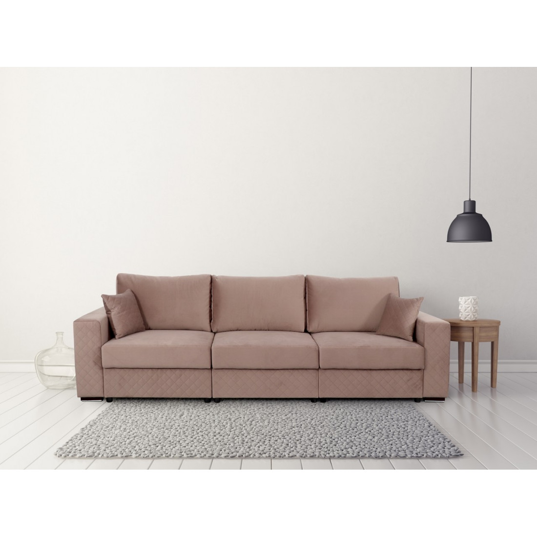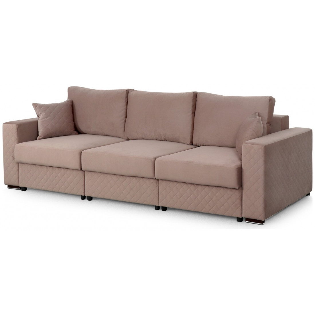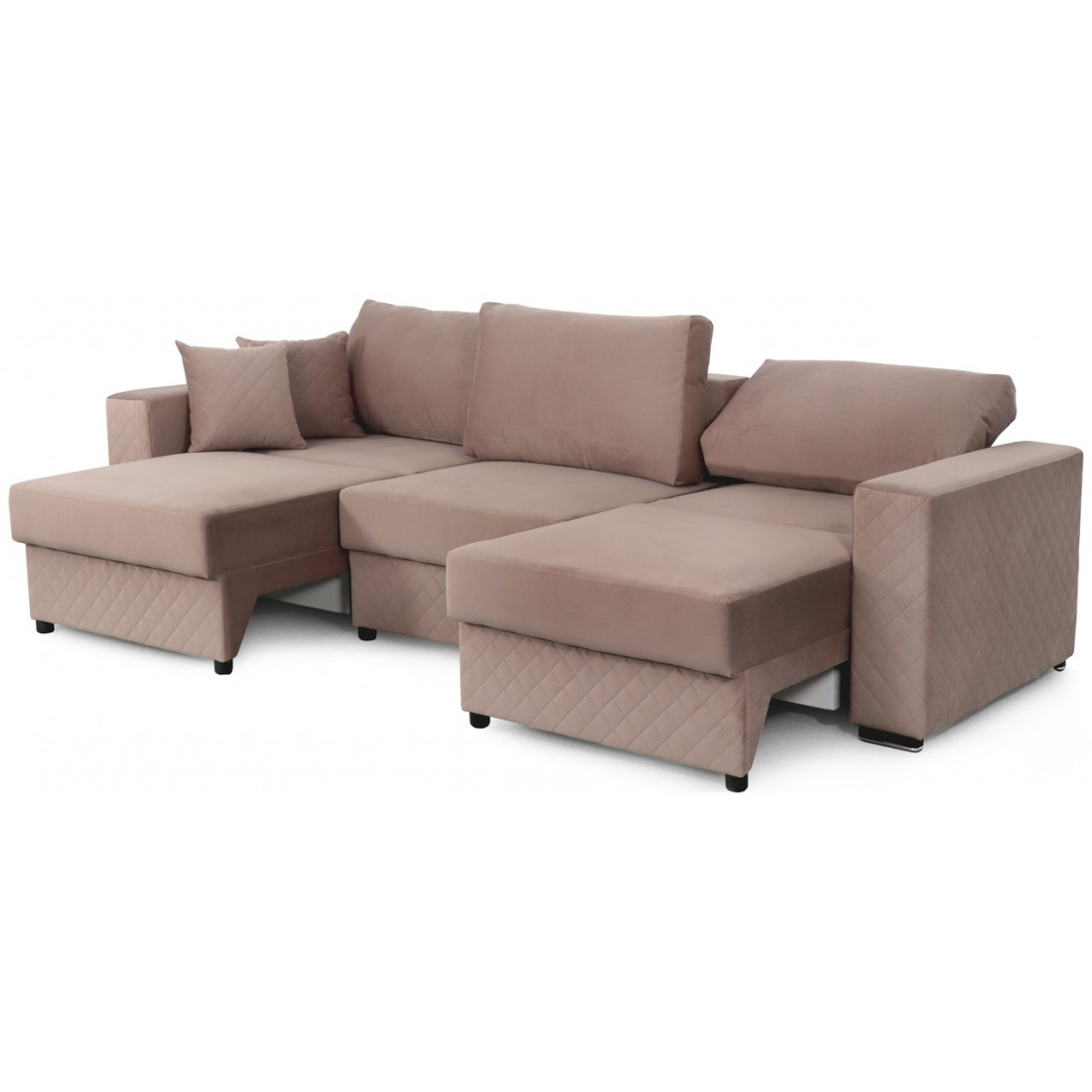 Диван может трансформироваться в угловой левый диван, угловой правый и П-образный диван. Это дает возможность его разнообразного использования. Малые декоративные подушки входят в комплект дивана.