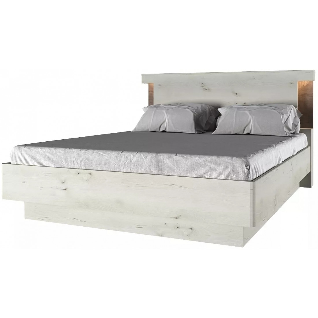 Двуспальная кровать Бьёрк 160 P с подъемным механизмом — предмет современной коллекции в стиле Loft, где все элементы мебели выполнены в декорах ольха полярная и оникс с использованием уникальной структуры плиты.