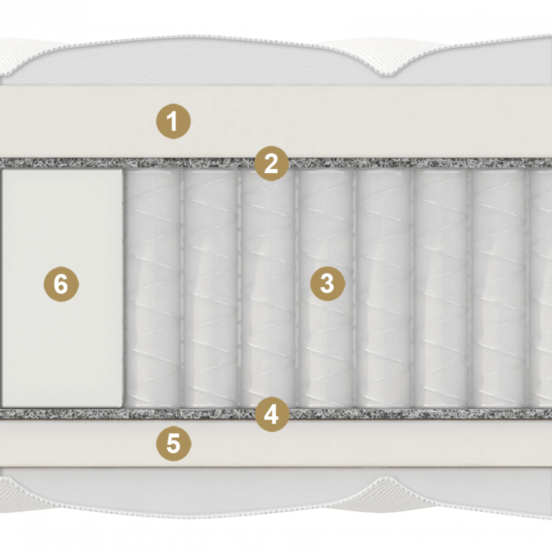 Вторая сторона более жесткая. Это достигается за счет гармоничного сочетания пены 3 см и термофиксированного фетра. Фетр придает поверхности твердость и увеличивает срок службы, а пена смягчает и дает упругость. Модель усилена каркасом 10 см по периметру, что обеспечивает дополнительную устойчивость – можно безбоязненно сидеть и лежать даже на краю спального места.