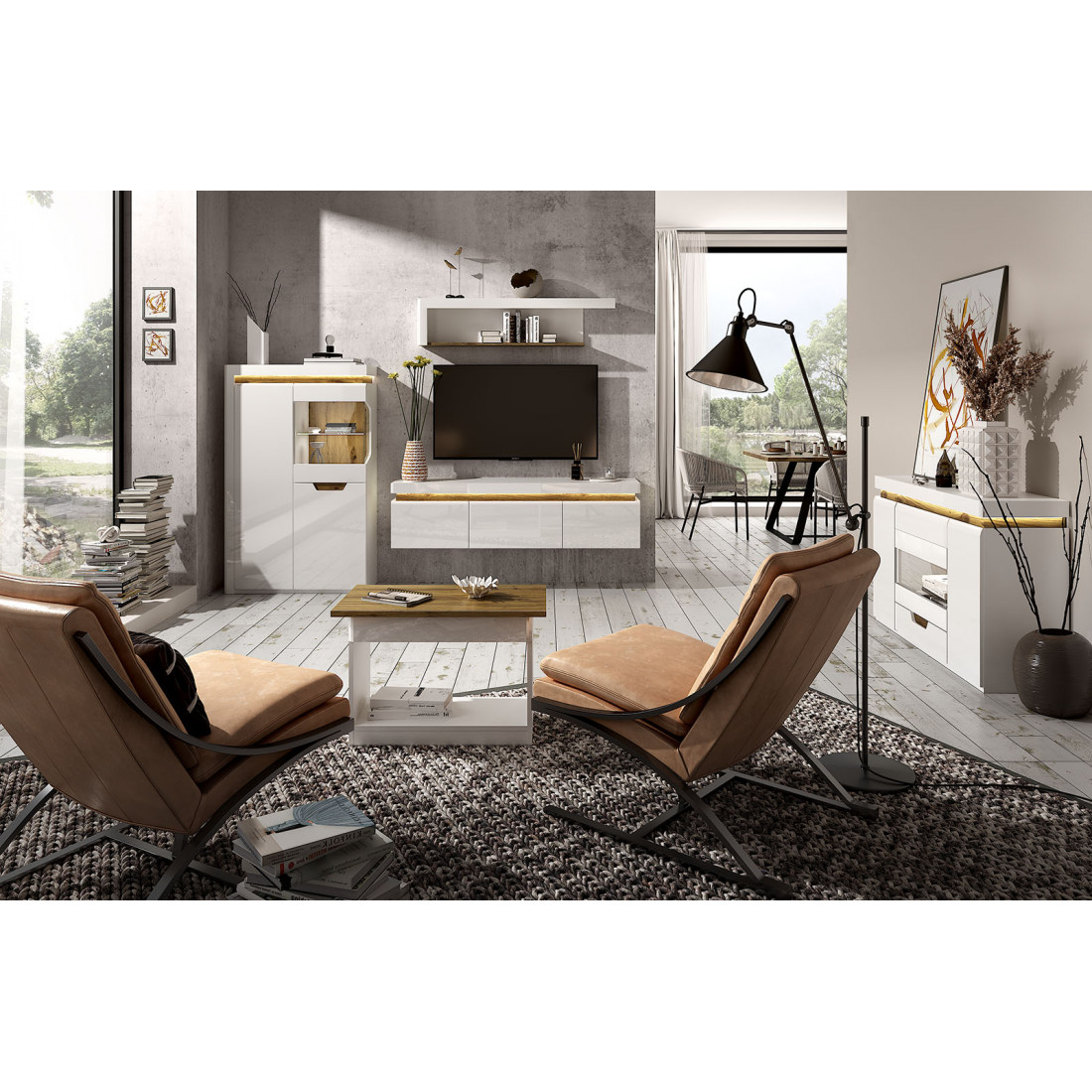 Гостиная Torino 1 благодаря нетрадиционному дизайну является отличным вариантом для тех, кто всегда следует новым веяниям моды.