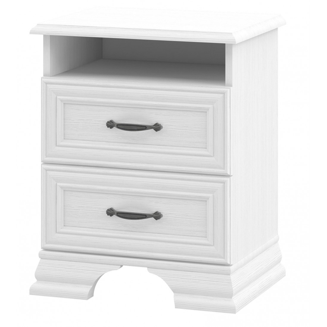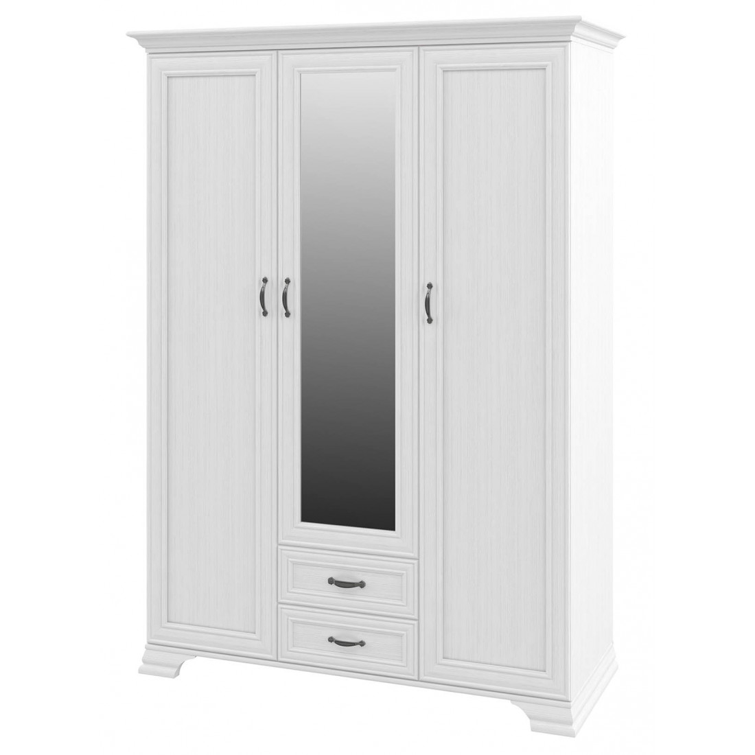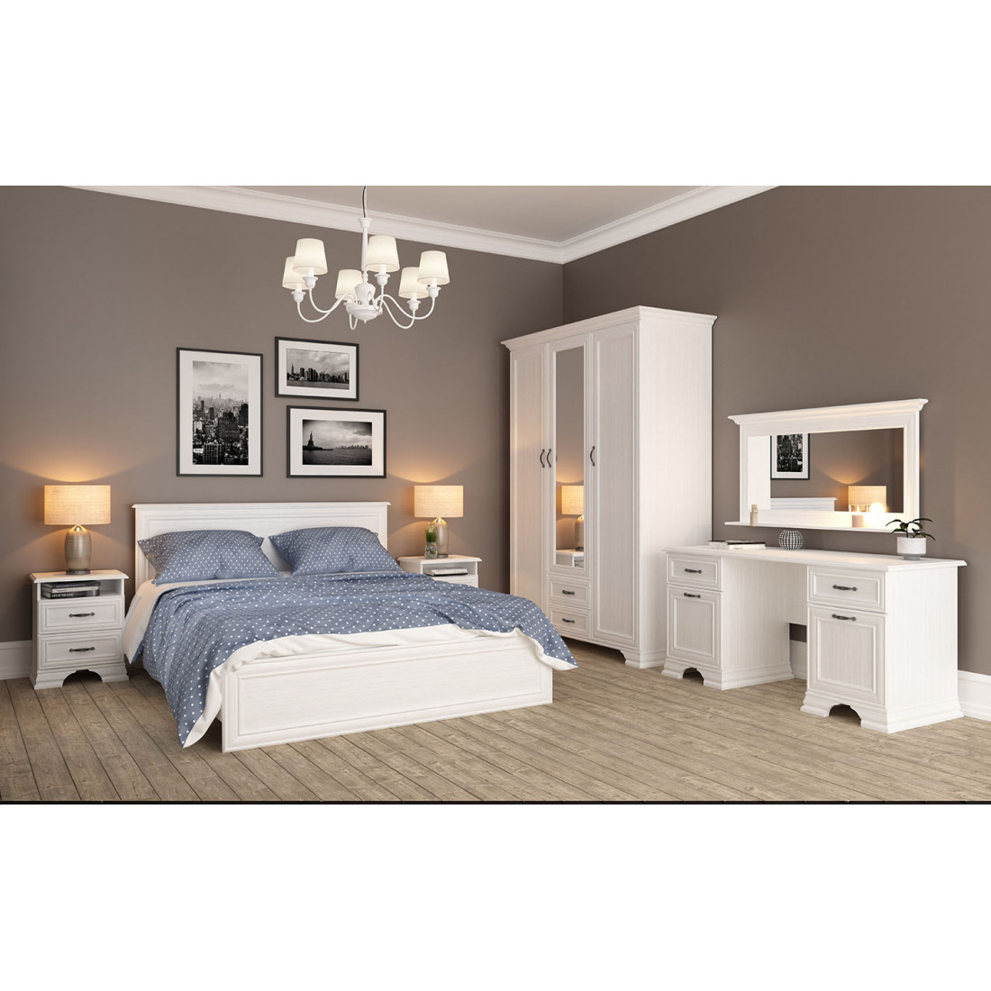Мебель для спальни Юнона от фабрики Мебель-Неман композиция 2 - спальный гарнитур в классическом стиле с отделкой структурной фактуры, обрамленный рамочным фасадом, где металлические ручки выгодно подчёркивают стиль и изящество, всегда актуален и востребован.
