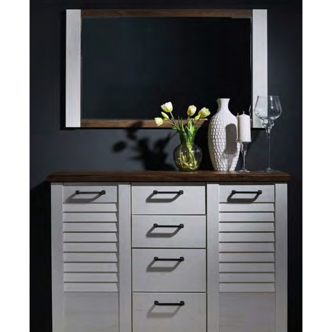 Зеркало Кантри является представителем коллекции «Кантри». Романтичный и спокойный внешний вид каждого элемента колеккции поможет сделать ваше жилое пространство по-настоящему уютным и изысканным. «Кантри» - это несколько вариантов расцветки, уникальный дизайн, разнообразие модульной системы и отсылки к натуральным материалам.