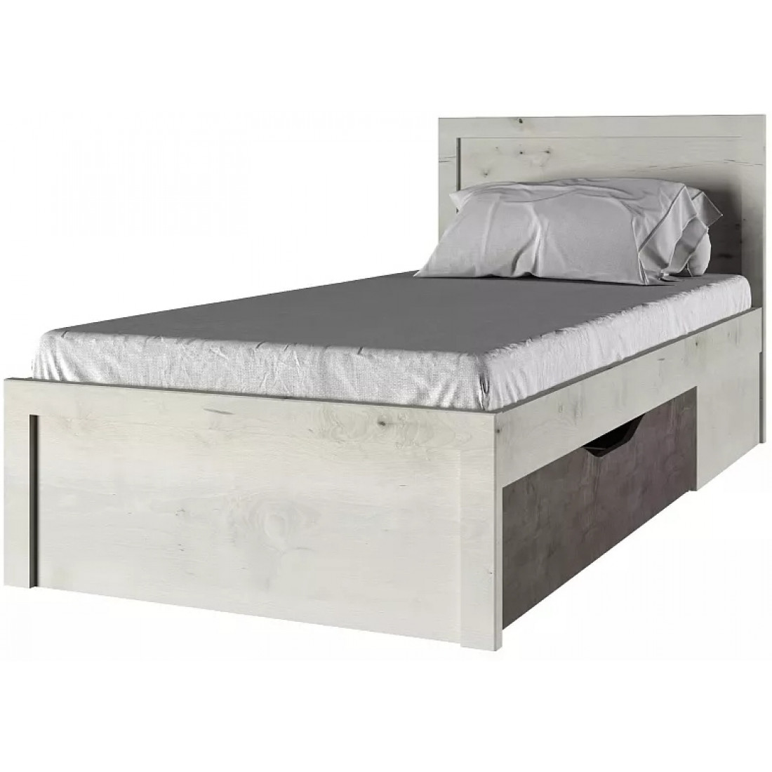 Односпальная кровать Бьёрк 90 — предмет современной коллекции в стиле Loft, где все элементы мебели выполнены в декорах ольха полярная и оникс с использованием уникальной структуры плиты.
