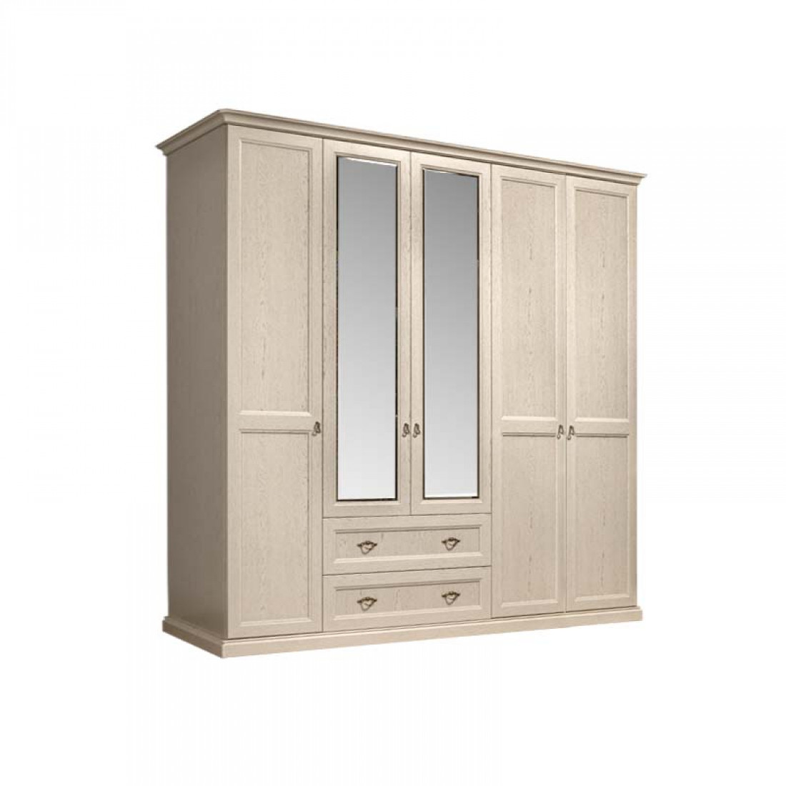 Пятидверный шкаф с зеркалами для платья и белья с выдвижными ящиками ВНШ1/51 изготовлен из ламинированной плиты Эггер (Австрия), а также плиты совместного итальянско-российского производства «Карелия ДСП», являющегося лучшим в России производителем мебельных плит, и покрыт итальянским лаком превосходного качества.