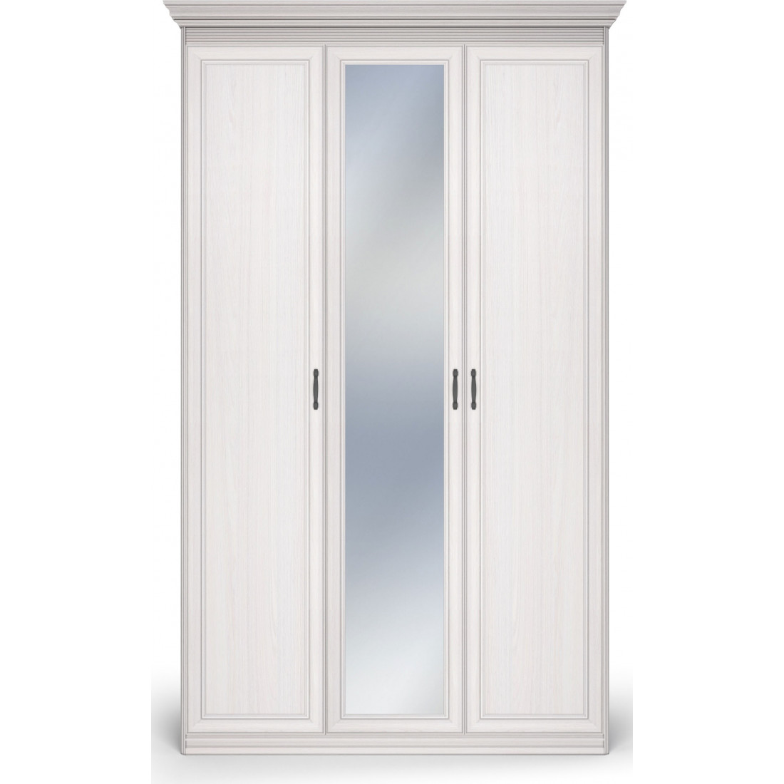 Шкаф 3-х дверный с глухой и зеркальной дверью Неаполь Ясень анкор светлый (патина "серебро")