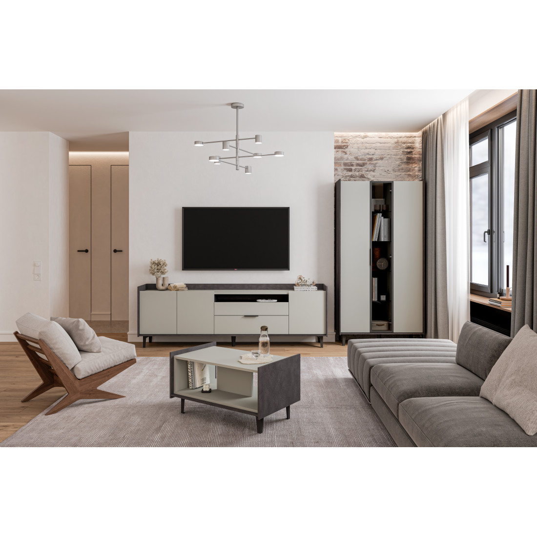 Элегантный шкаф Модена создает изысканную атмосферу в вашей гостиной. Предлагается в трех стильных вариантах цветов: Белый-Дуб Элисон, Лунный камень-жемчуг, Металл Бруклин-лунный жемчуг. Ножки из металла обеспечивают прочную поддержку. Темное стекло добавляет утонченности дизайну. Шкаф имеет два отделения с полками для удобного хранения, а также одно отделение со стеклянными полками и стеклянным фасадом, придающим ему элегантность. Идеальное решение для организации пространства в вашей гостиной.