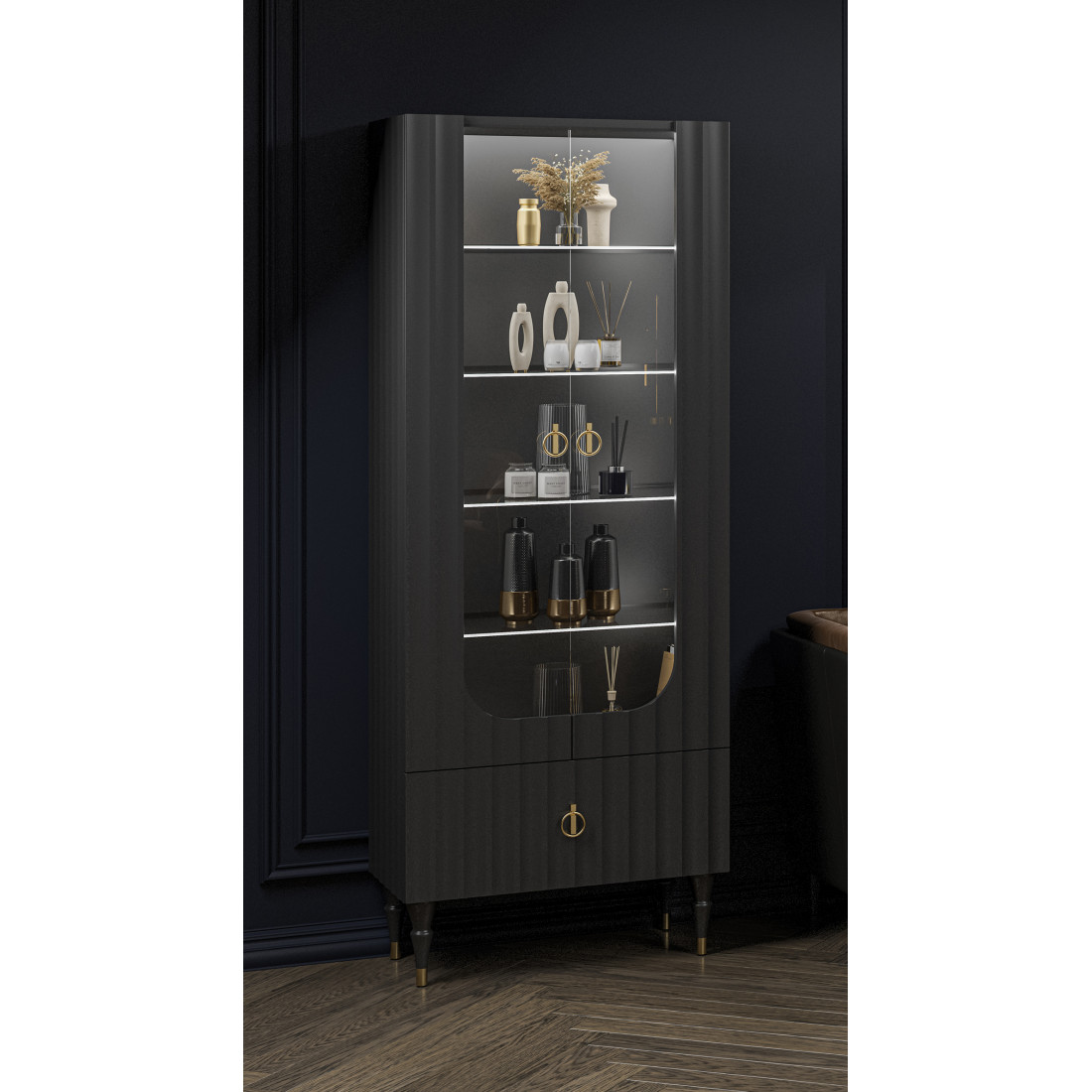Шкаф-витрина МН-043-25 серии Лоренсо от фабрики Мебель-Неман.Петли с доводчиками, рассчитанные на десятки тысяч циклов закрывания, работают плавно и бесшумно.Фасады и боковые панели в коллекции Лоренсо выполнены с инновационным покрытием Serica от итальянских производителей. Это современное, матовое, антибликовое покрытие, приятное на ощупь SOFT-TOUCH. Поверхность защищена от царапин, благодаря специальной обработке. При возникновении микродефекта, его можно легко устранить с помощью термического сглаживания. Технология ANTI-FINGERPRINT гарантирует отсутствие отпечатков пальцев на фасадах.