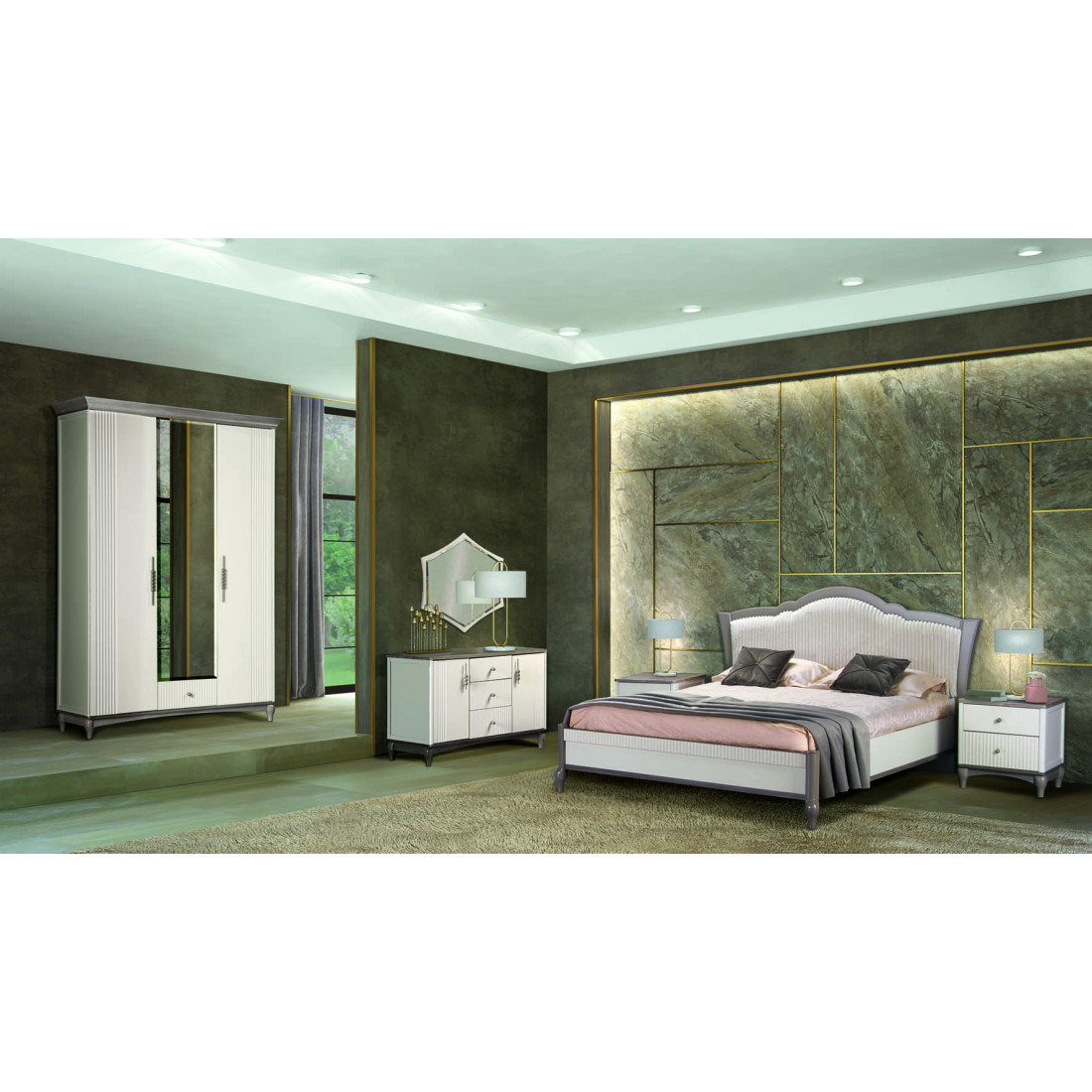 Фасады: МДФ, декор – кашемир серый, зеркало с фацетом