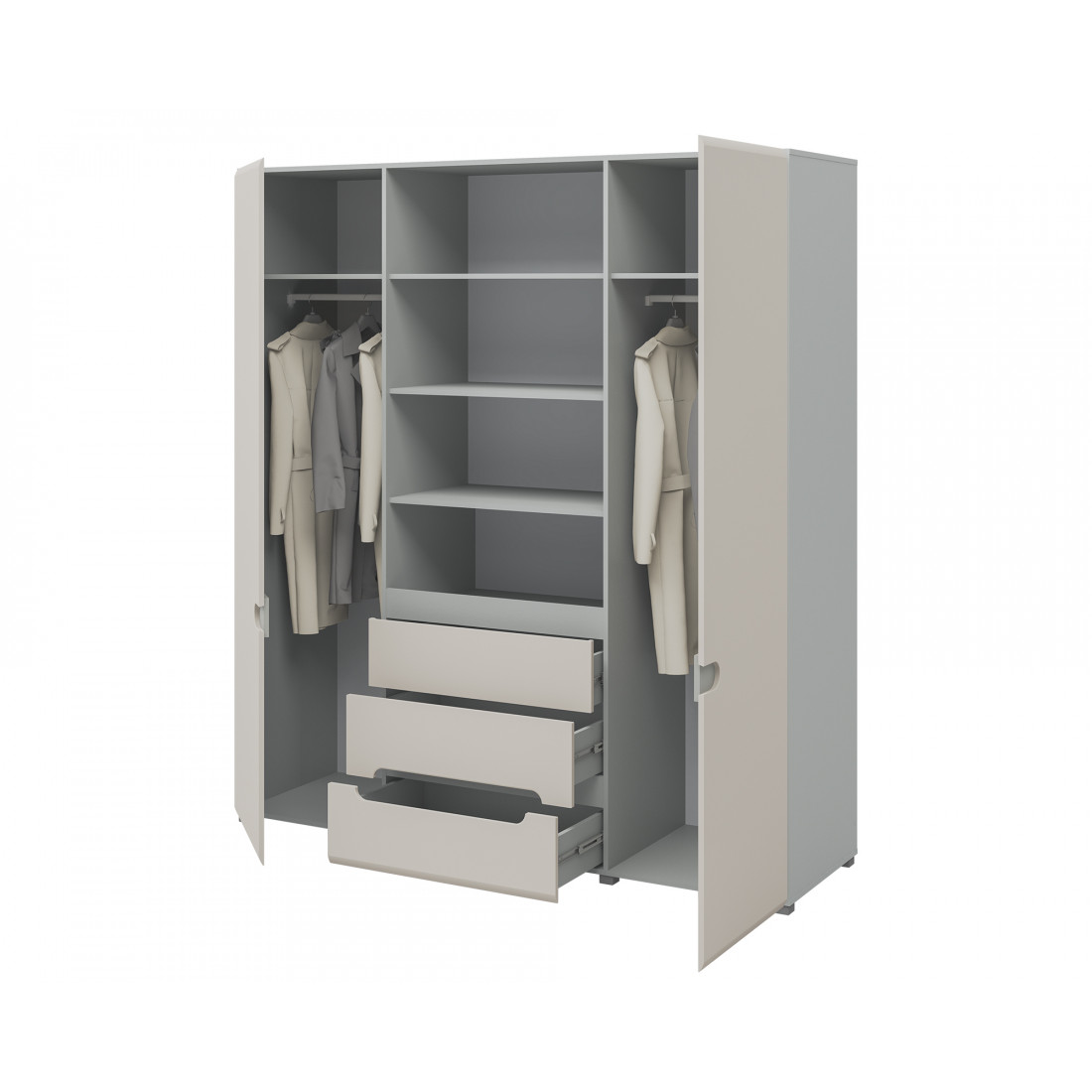 Четырехстворчатый шкаф для одежды и белья с зеркалом в спальню Леонардо МН-026-09