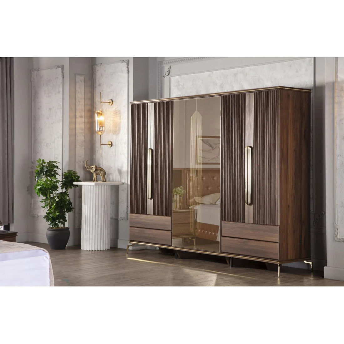 Пятистворчатый шкаф для одежды с зеркалом Тиффани 5DG2S Z крем вудлайн