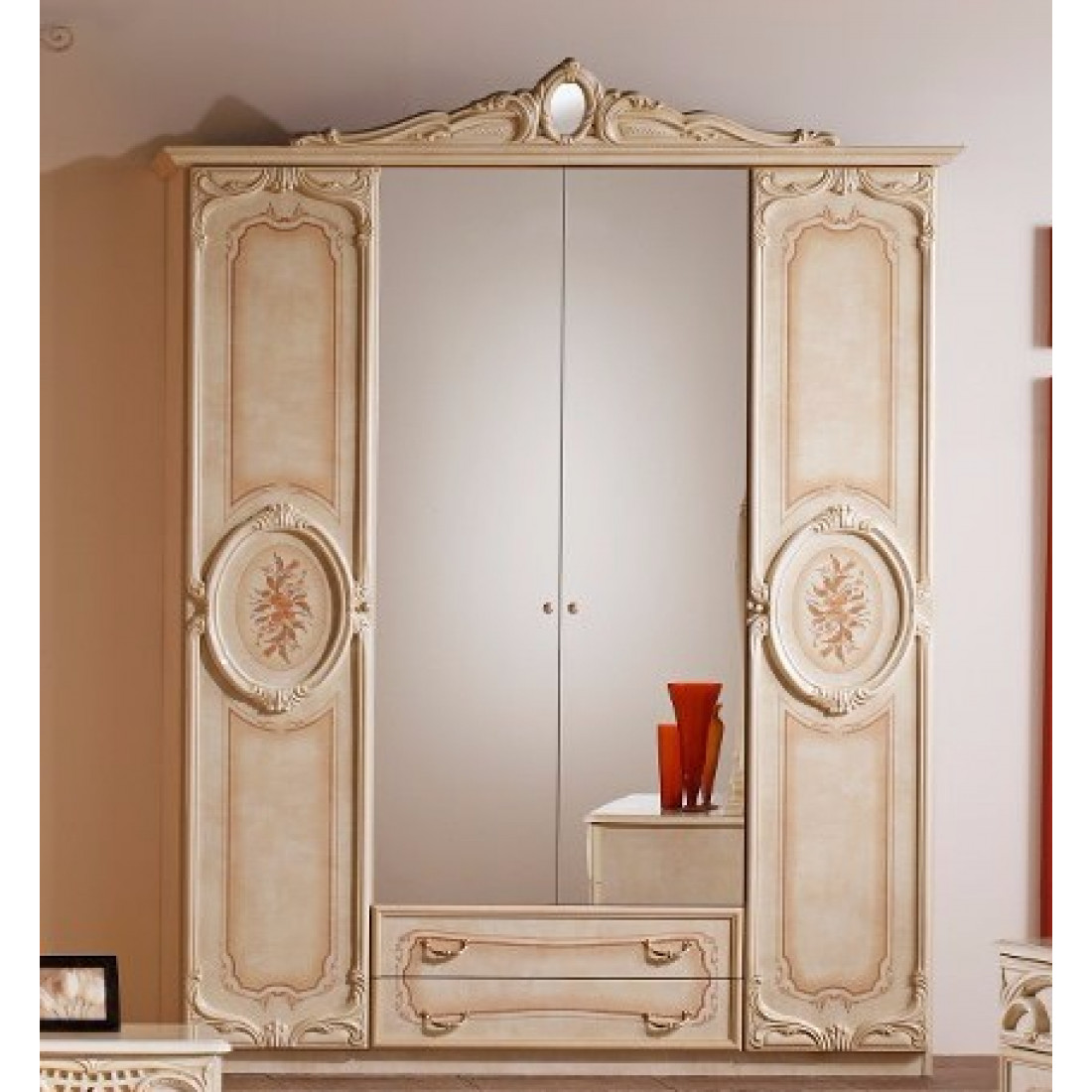 Спальня Роза (беж) от Российской фабрики "ДИА мебель". Выполнена в классическом стиле. Такая спальня коллекции Роза порадует Вас своим дизайном и многофункциональностью. Бежевый цвет в сочетании с глянцевым покрытием и орнаментом на фасадах, придает этой модели еще изысканности и подчеркивает прекрасное чувство стиля своего владельца. Поможет насладиться прекрасным вечером после трудного дня.