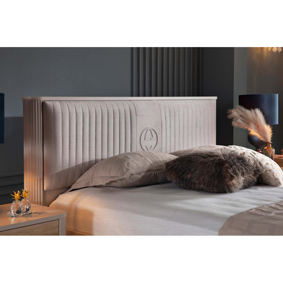 В цветовой гамме спального гарнитура Sanvito предпочтение отдается кремовому и ореховому цветам.