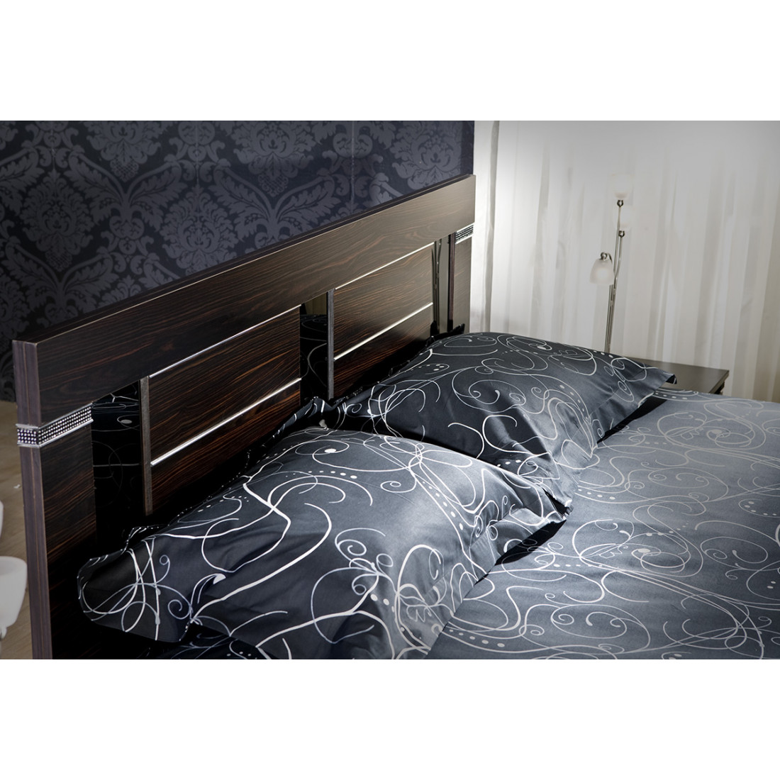 Спинка для кровати MIRA-25 (венге) серии Мира от Беллона выпускается производителем в трех, разных по ширине, размерах. Ею можно украсить базовый комплект Ferro и Active, также представленных на продажу в интернет-магазине Меланго. В оформлении высокой спинки используются стразы и декоративные вставки из глянцевого каленого стекла черного цвета. Купить спинку для кровати можно отдельно, сниженная цена делает модель еще привлекательней.