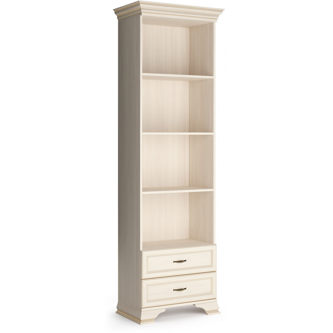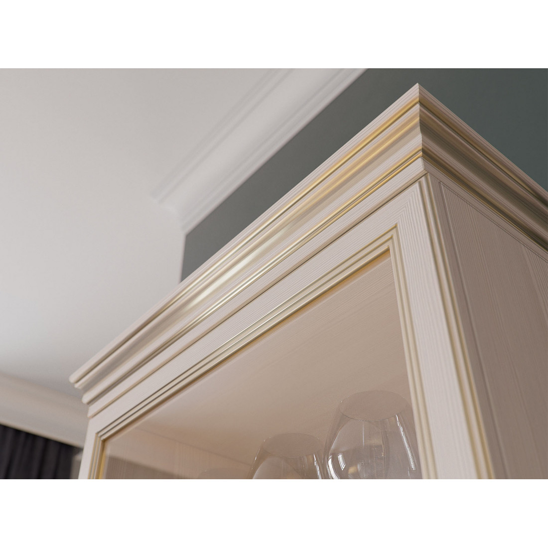 Коллекция производится в текстуре «бодега белый» с эффектом золотого патинирования. Облик «Сиены» дополняют рамочные фасады и карниз в классическом стиле, а также эффектные опоры из МДФ. Мебель комплектуются металлической лицевой фурнитурой премиум-класса в цвете «старая бронза» и надежной крепежной фурнитурой.