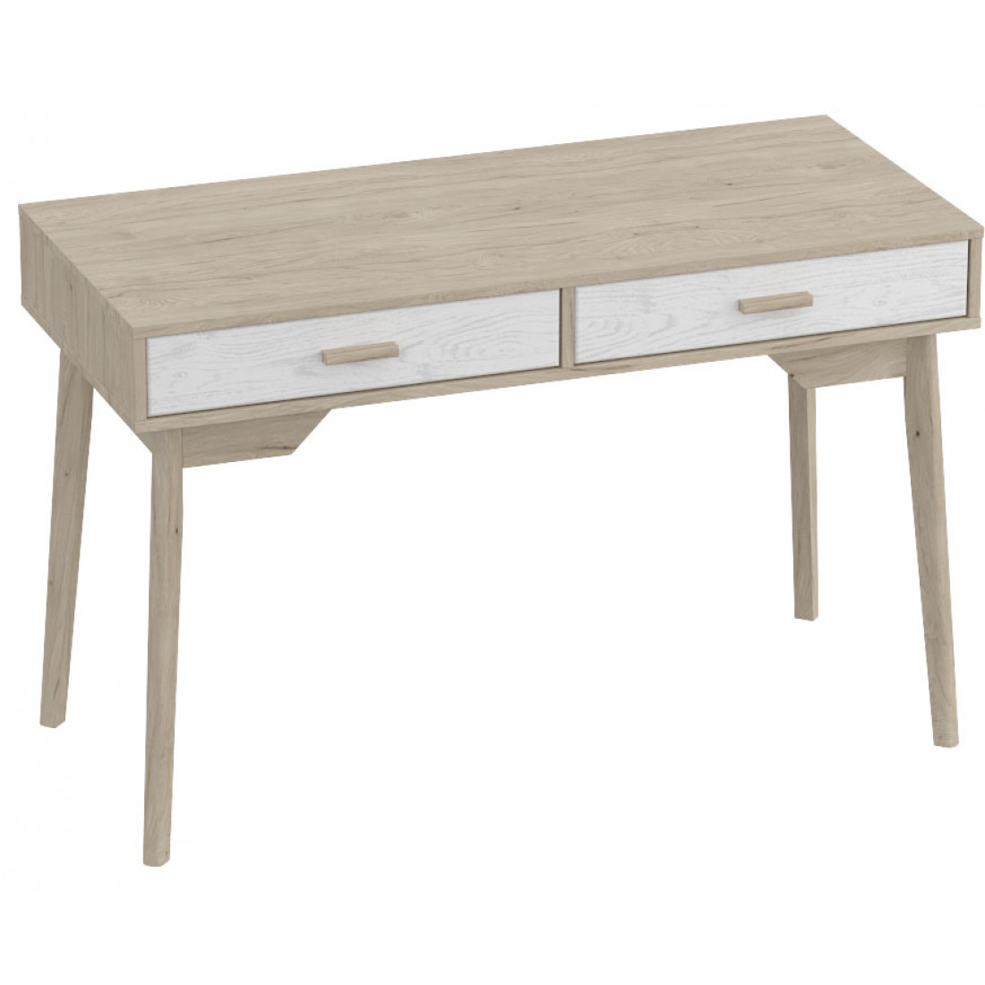 Ультратрендовый письменный стол Калгари от Мебельград, выполненная в светлых тонах с элементами сдержанного стиля 60-х - высокие ножки, выраженная деревянная текстура натурального дуба, четкие формы. Вся мебель очень мобильная, компактная, вызывает чуство легкости и свободного пространства, при этом она функциональна.