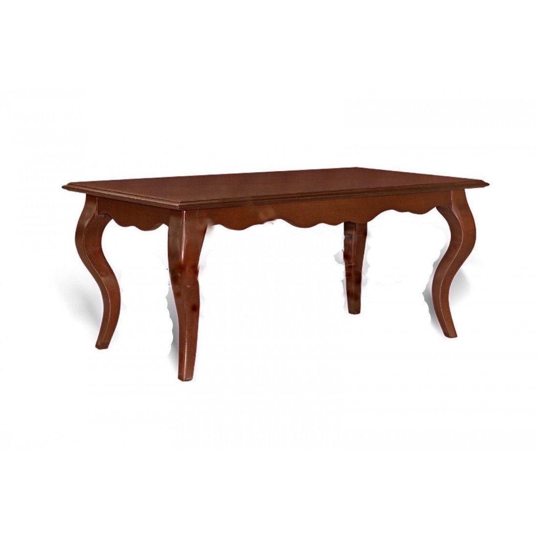 Широкий журнальный столик на гнутых ножках из коллекции "Оскар" отлично дополнит интерьер гостиной. Декорирован резьбой, выполнен из массива и шпона дуба, окрашен в классический "Орех".