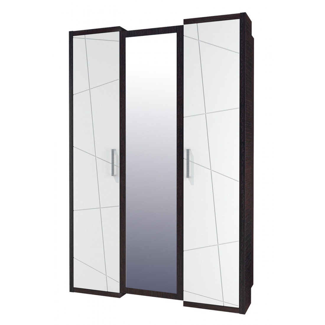 Новинка! Трехдверный шкаф для одежды в спальню МН-115-03-220 серии Барселона от Мебель-Неман представляет собой универсальный вместительный гардероб с зеркалом по центру или без него (на выбор), закрывающим отделение под плечики, и боковыми глухими дверцами в белом глянце, за которыми скрываются стеллажные секции. Купить трехдверный шкаф в контрастном сочетании и актуального дизайна можно по недорогой цене.
