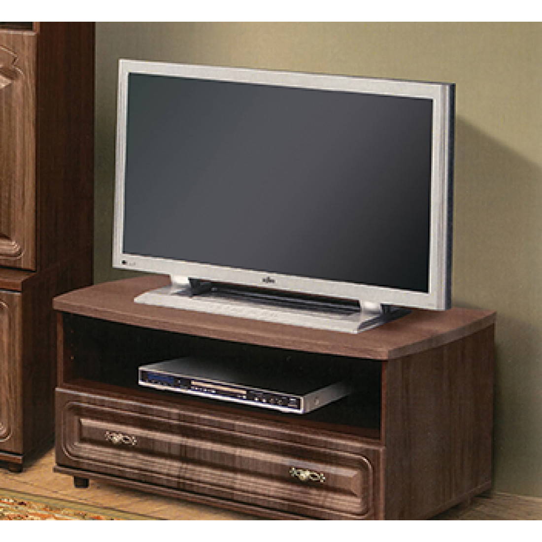 Тумба под телевизор в гостиную Романтика ВК-09-06, цветовое исполнение орех темный.