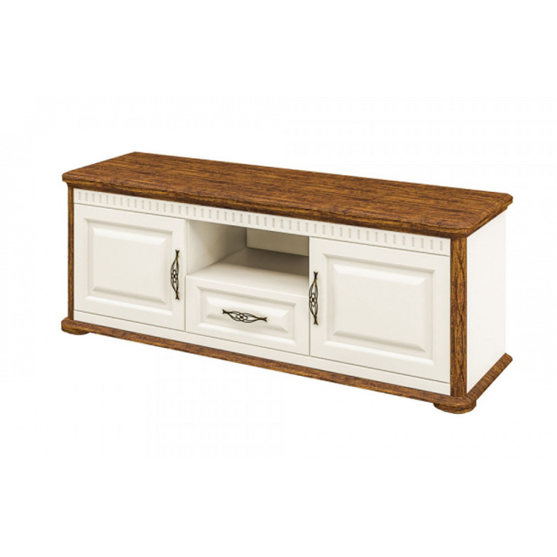 Функциональная, красивая и элегантная тумба под ТВ для гостиной новой коллекции Марсель от Мебель-Неман выполнена современном стиле. Теплый оттенок "крем" корпуса и фасадной части дополнен эффектным рамочным обрамлением контрастного цвета "дуб кантри".