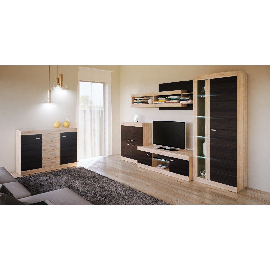 Широкий комод (тумба) для гостиной Веста понравится Вам и дизайном и количеством полок и ящиков.