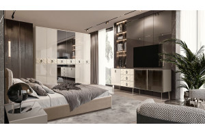 Двери и шуфляды шкафов открываются за счет бесшумных петель фирм «Hettich» (Германия) и «Hafele» (Германия). Фасады дверей с рисунком, нанесенным методом шелкографии, привезены из Италии. Также дверцы и карнизы могут быть украшены профилями МДФ, изготовленными и привезенными из Италии.